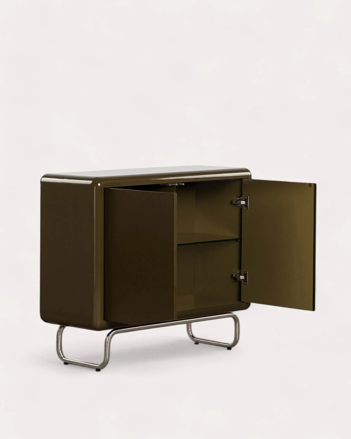 დაბალი ბუფეტი 2 კარით, ხის და ლითონისგან.