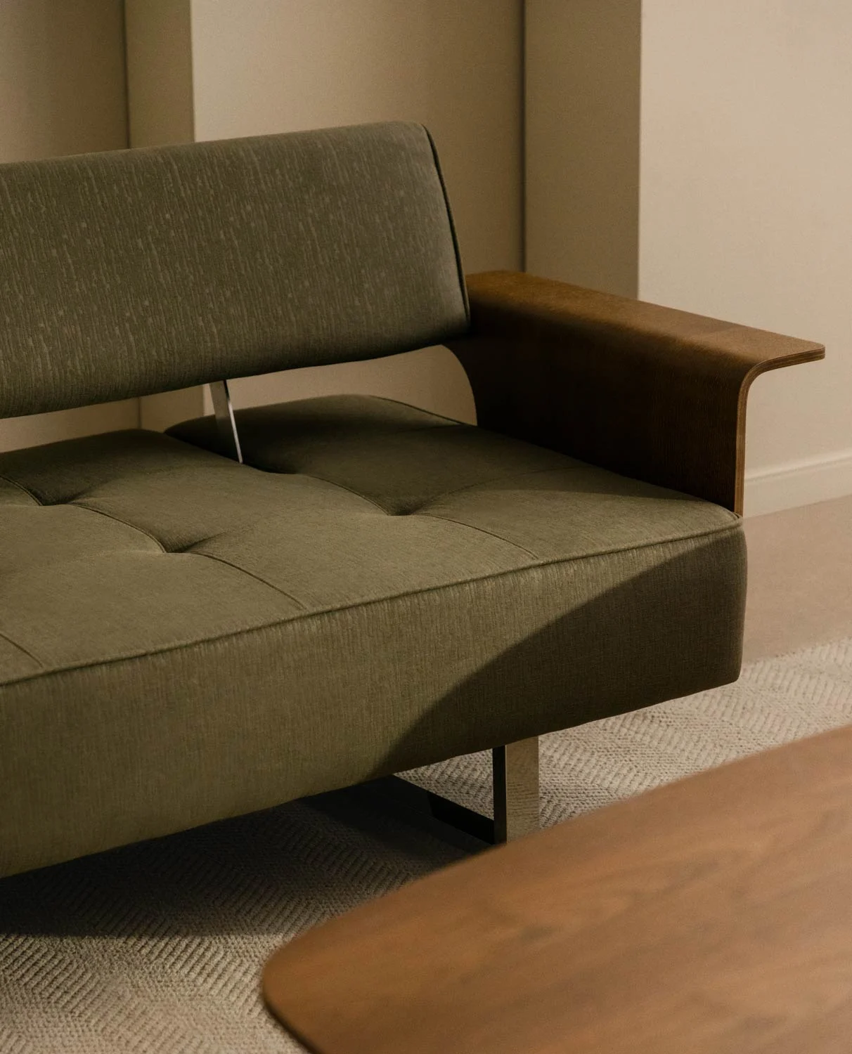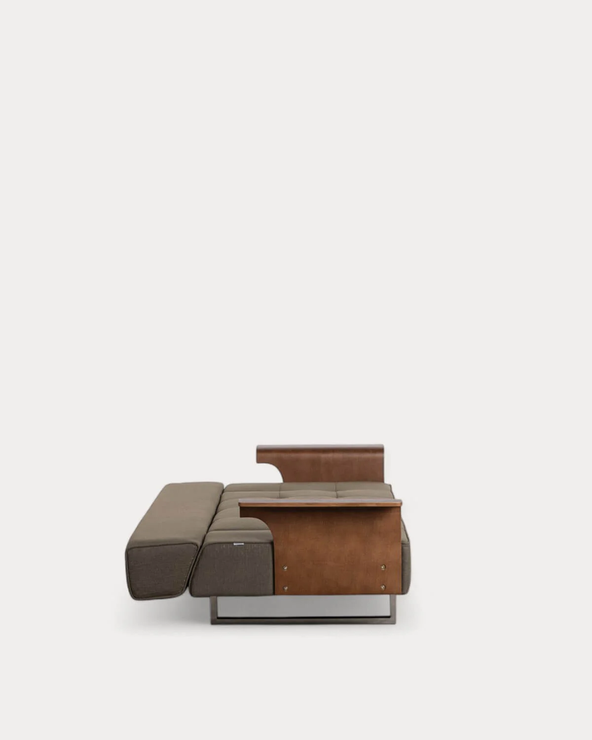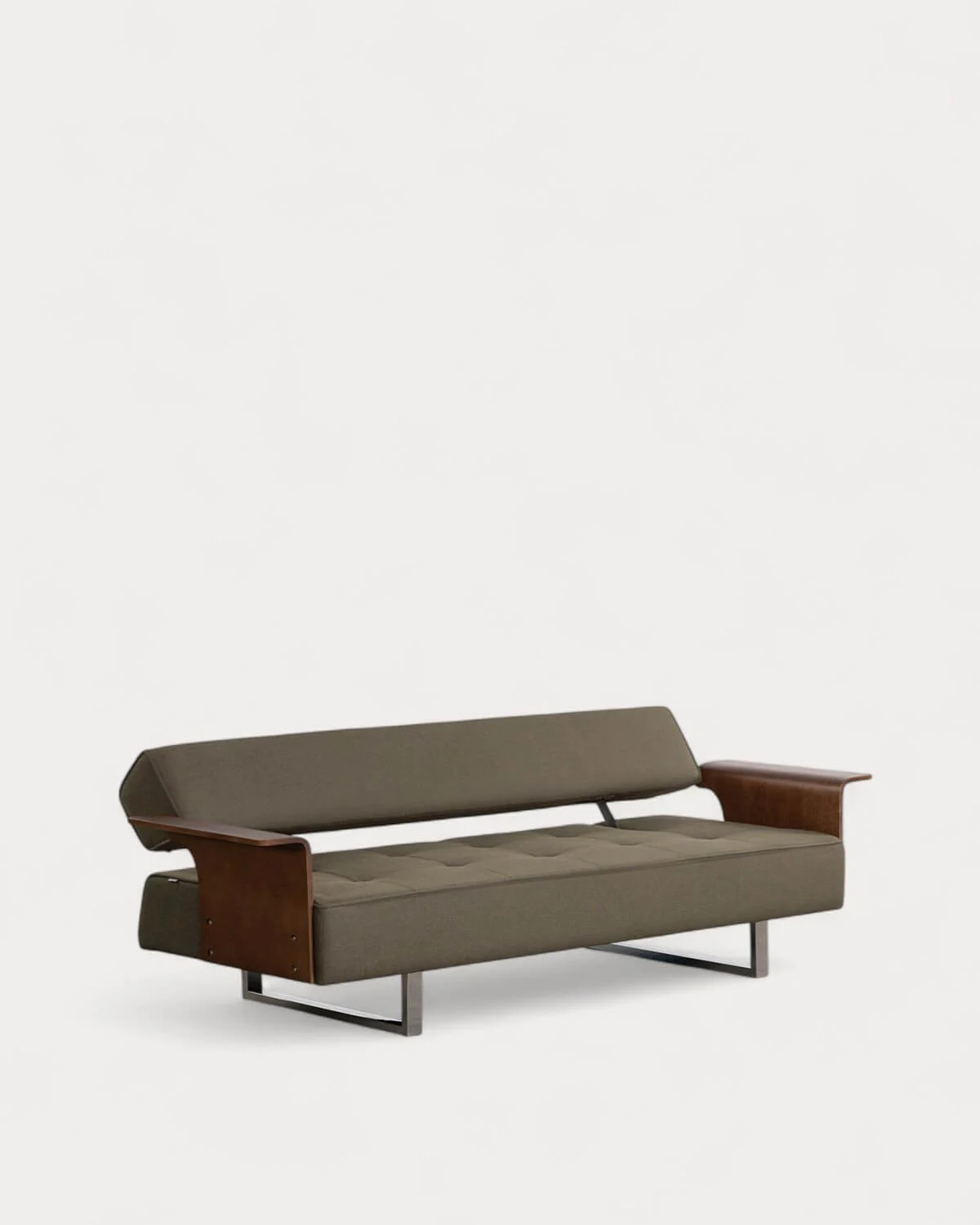 3-ადგილიანი გასაშლელი დივანი ქსოვილის და ხის სახელურებით