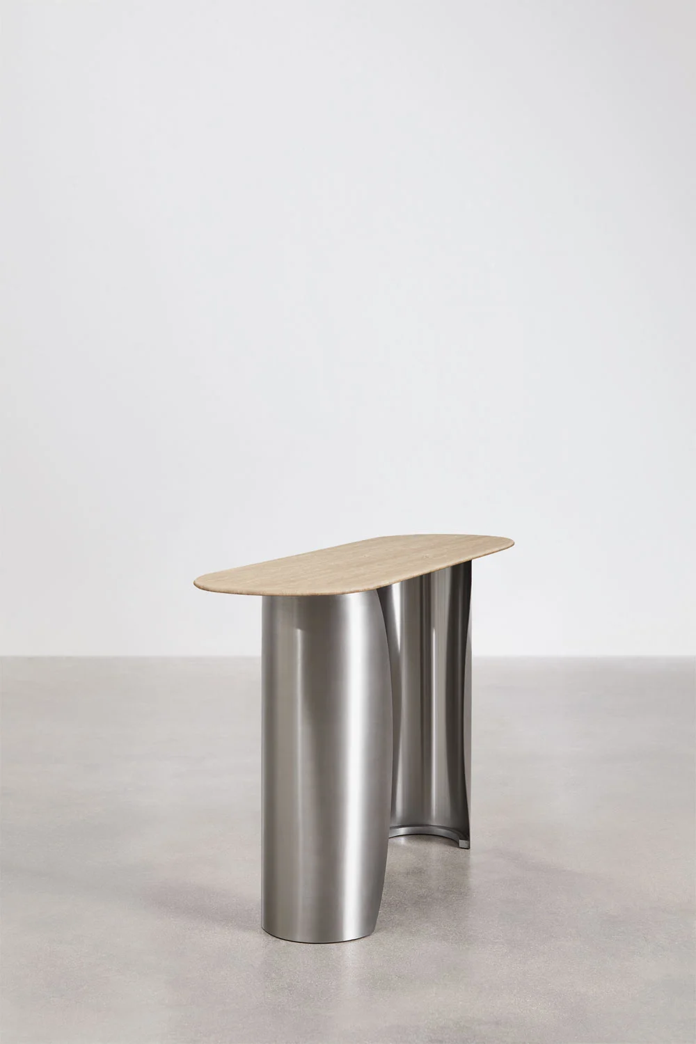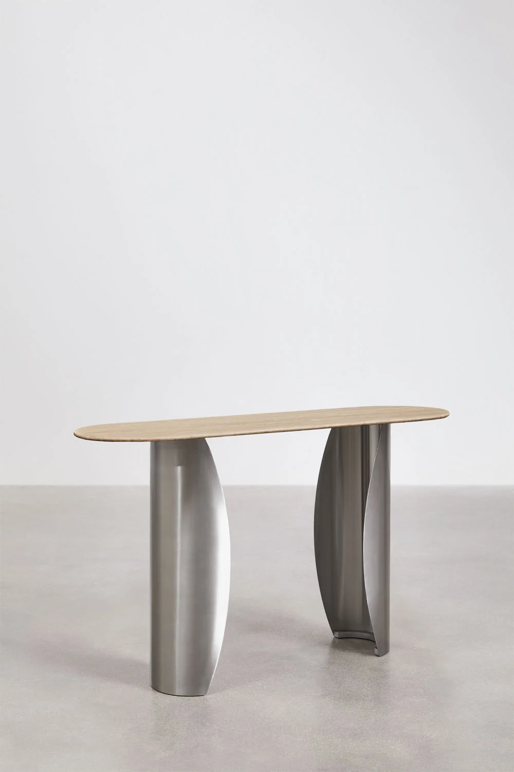 ოვალური კონსოლის მაგიდა უჟანგავი ფოლადისგან